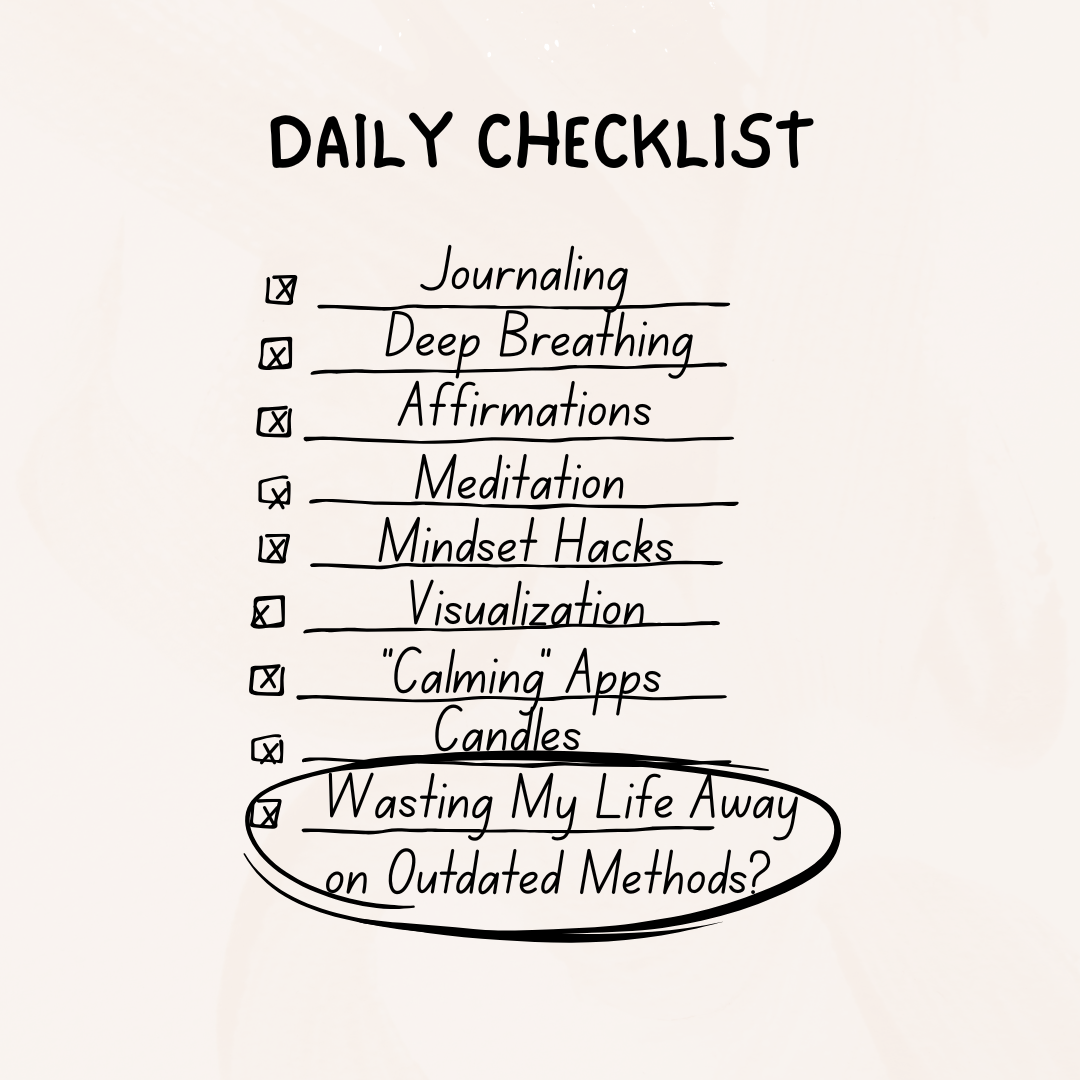 You tap on acupuncture points, journal, breathe, visualize, try mindset hacks that weren't designed for your mind in the first place - and the same patterns keep showing up.